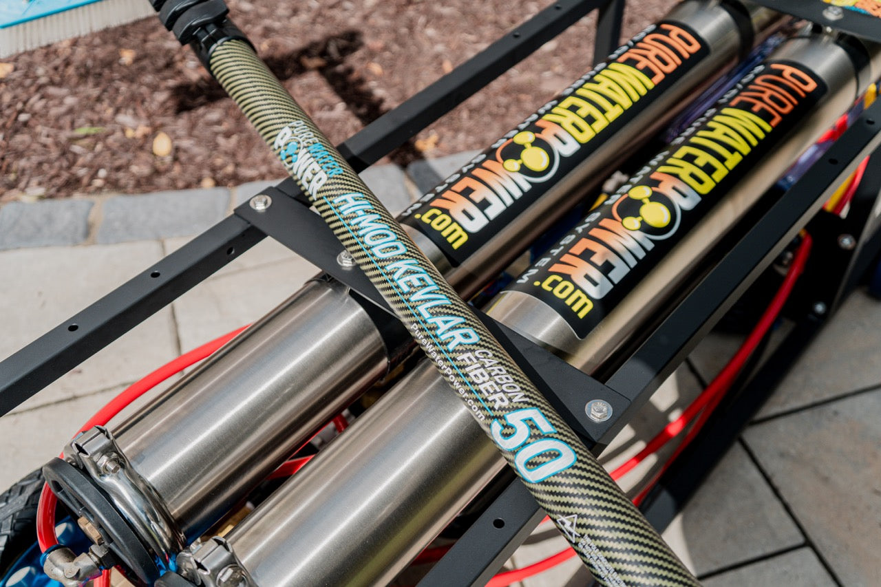 Pure Water Power water fed poles are designed to be stiff, light, and durable. Crafted with a variety of materials you'll find poles made from Kevlar, Carbon Fiber, High Modulus Carbon Fiber, and Ultra High Modulus Carbon Fiber. No matter your budget, you'll find the Pure Water Power pole that fits your working style.