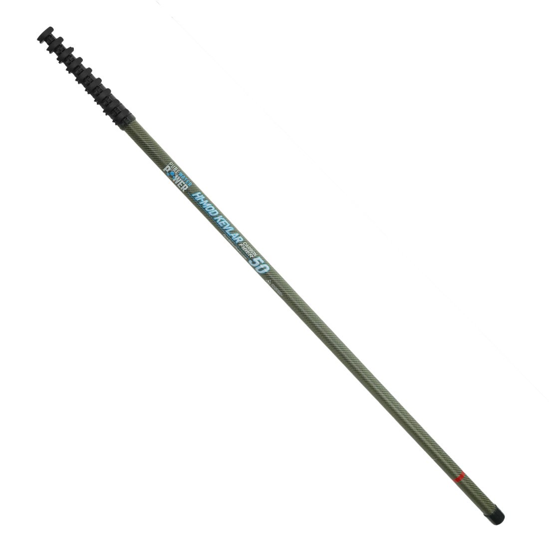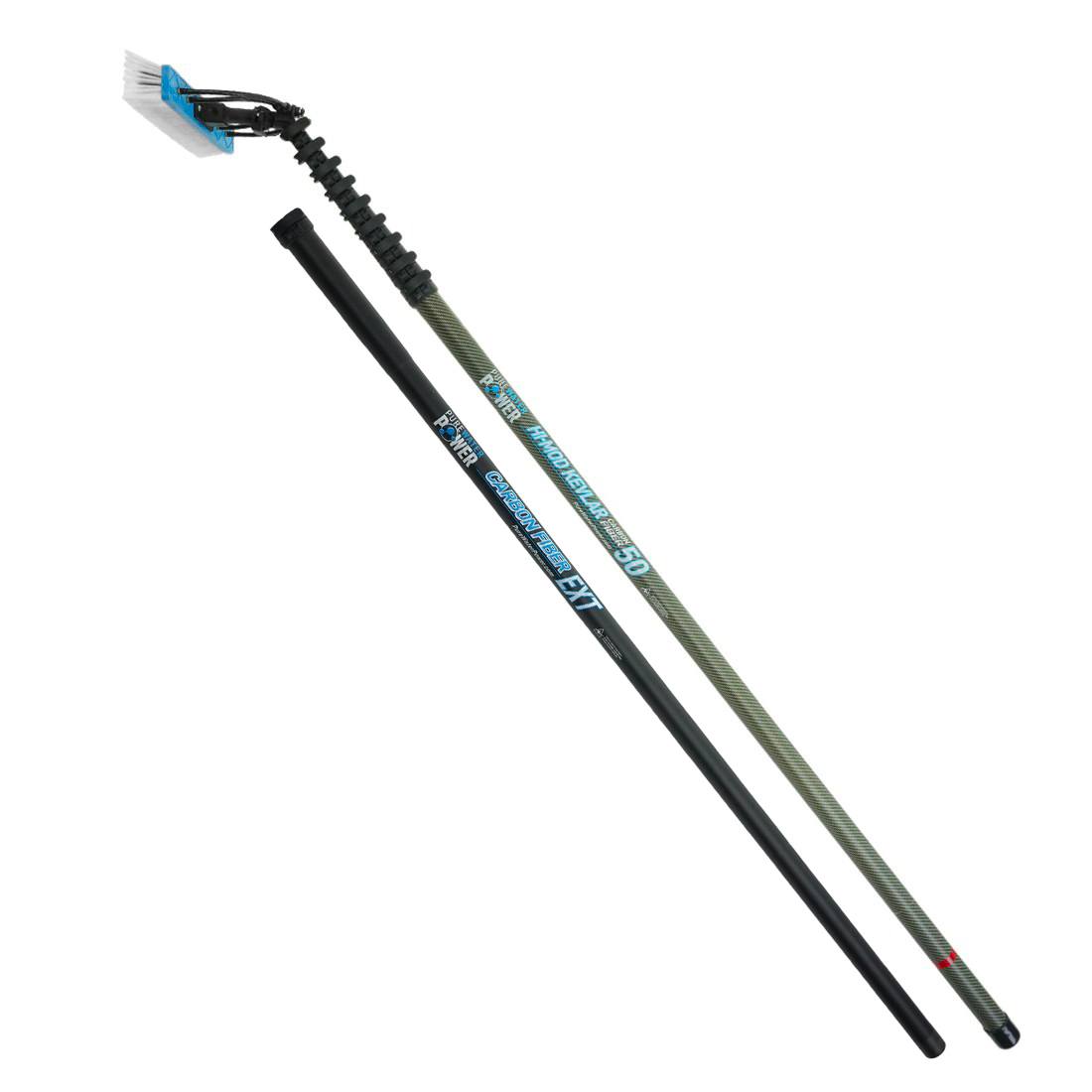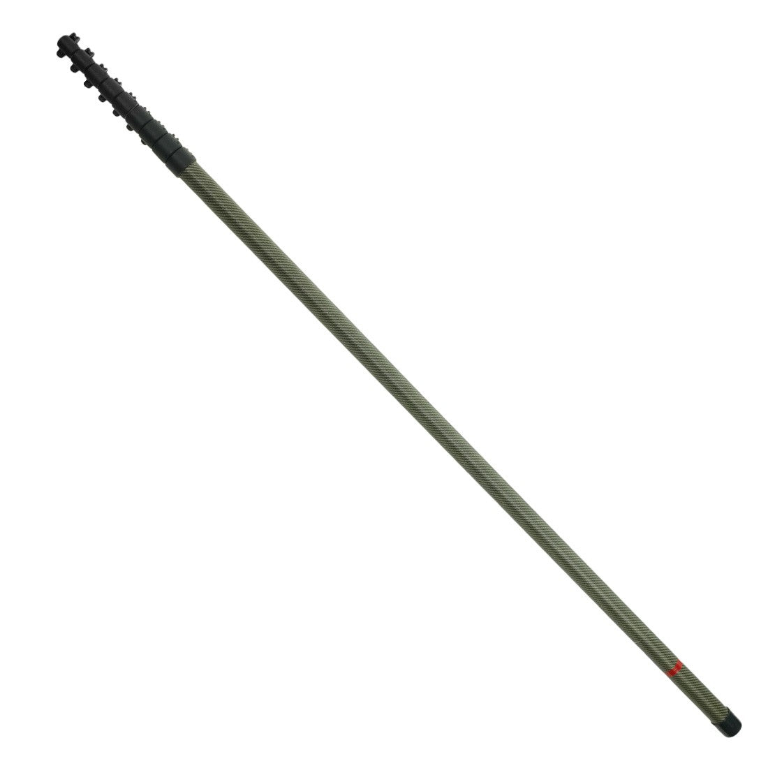 Constructed with a unique blend of interwoven high-modulus carbon fiber and kevlar materials, these poles are extremely durable and lightweight while also maintaining rigidity. They include bolt-on clamps that can conveniently be replaced if damage occurs. These clamps are easy to operate and securely hold extended sections in place while you work. The end of this pole features a plastic end defender to prevent possible damage caused by pavement or other rough surfaces.