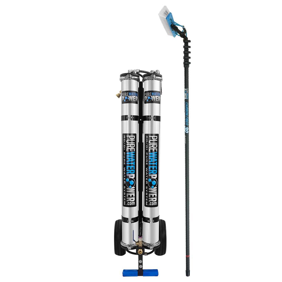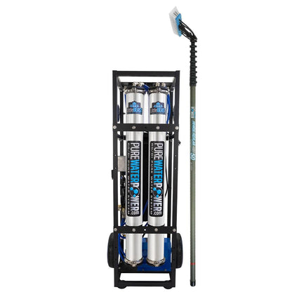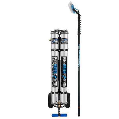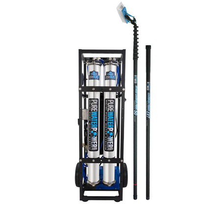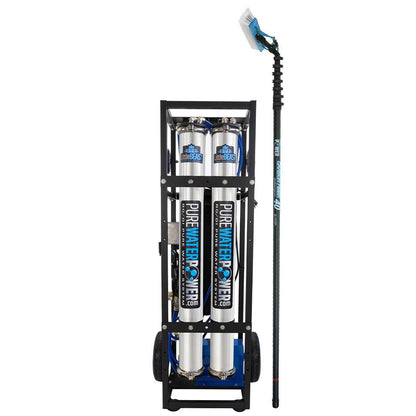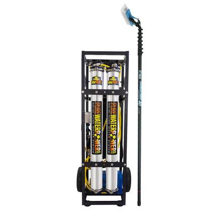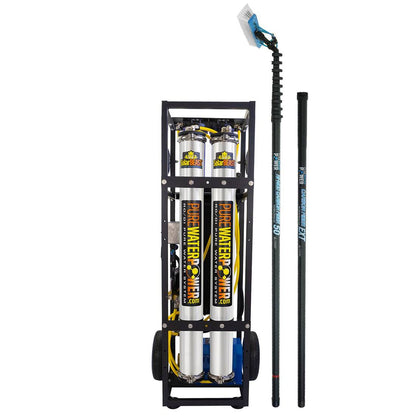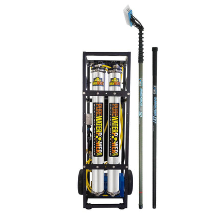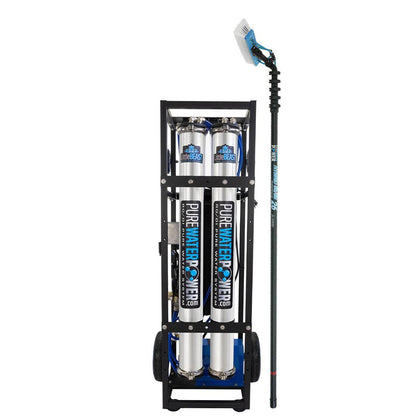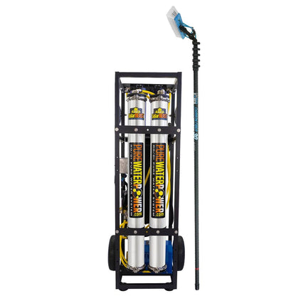 The powerful Pure Water Power Double RO/DI System is equipped with dual ROs, significantly increasing your gallons-per-minute output and eliminating the need for a pump. This enables the cleaning of taller windows and allows you to operate two poles.