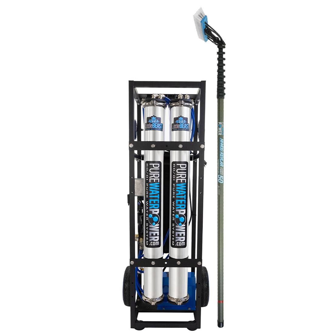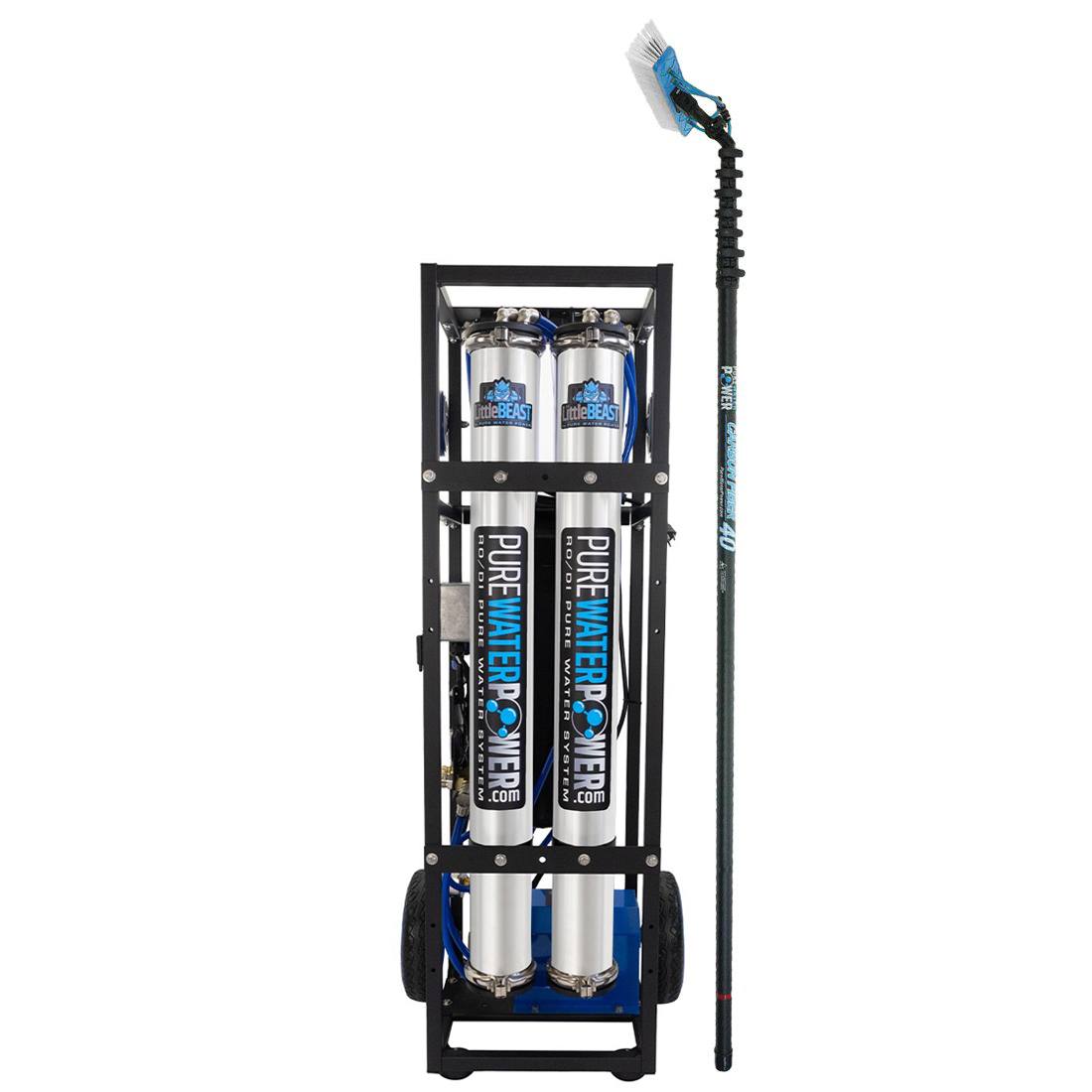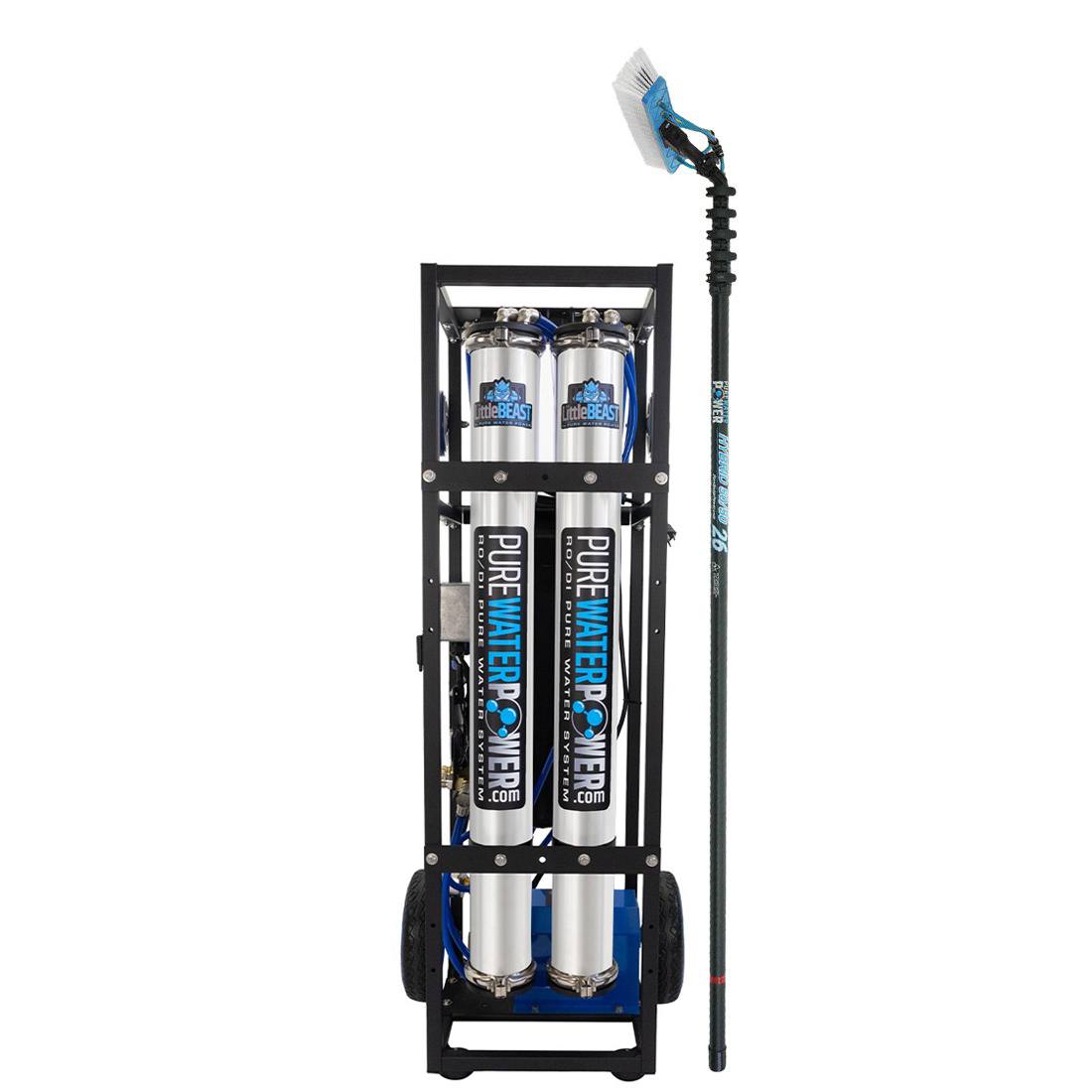 The Pure Water Power Little Beast Dual RO/DI is a powerful water purification system that can produce up to 1 gallon per minute off of source pressure. When used with the included booster pump, it is capable of producing up to 2.5 gallons per minute - perfect for large commercial window cleanings.